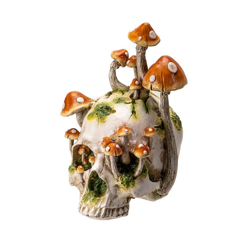 Large Skull with Mushrooms Product Size: 9.65" X 7.87" X 11.81" Material: Cold Cast Resin