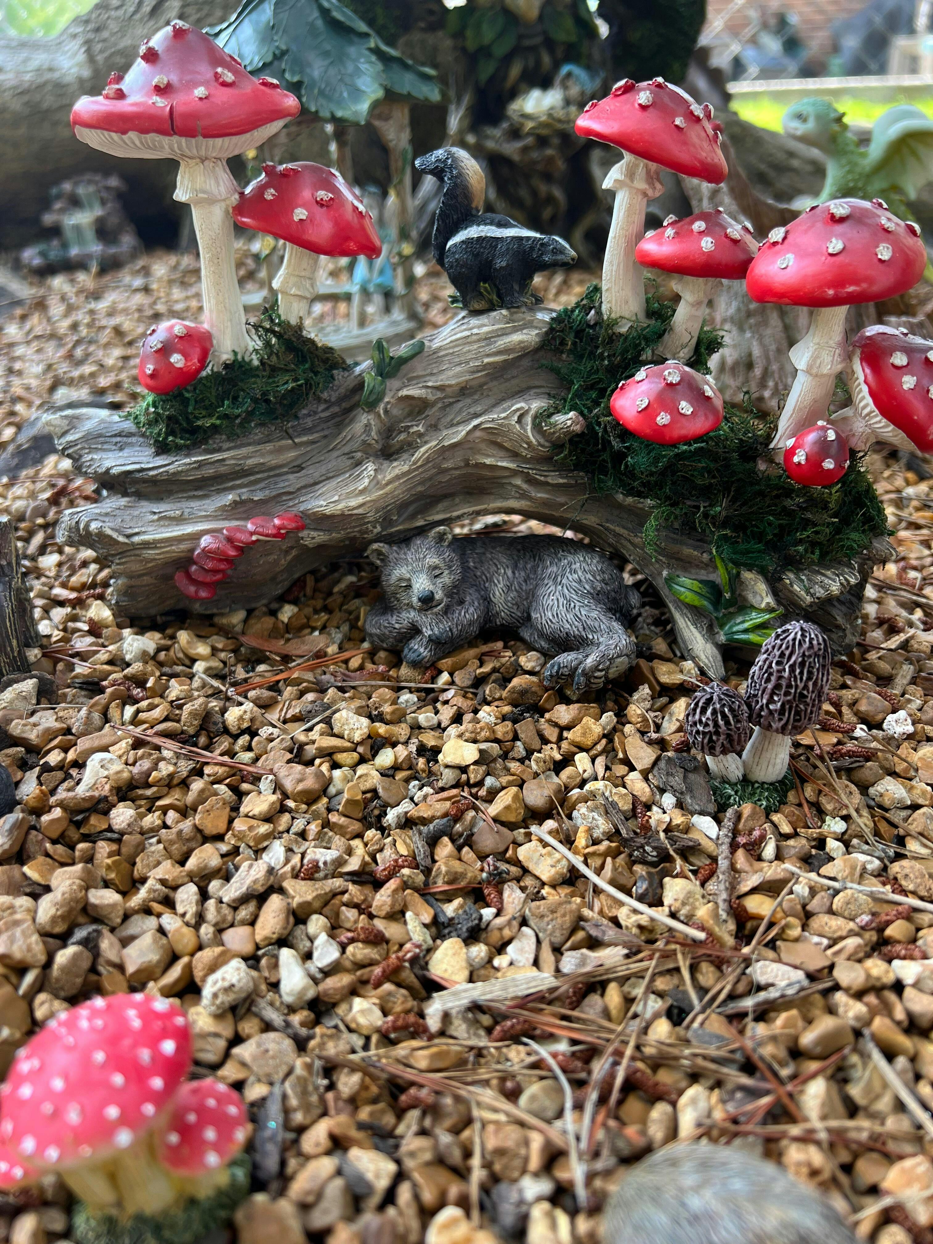 Add a bit of interest to your fairy garden with this incredible piece. Beautifully detailed, and and spectacularly magical this mushroom and moss adorned stump instantly tranforms any fairy garden in to a realm of enchantment.