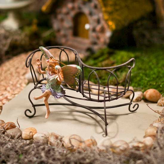 Add this Miniature Garden Tete-a-Tete Bench to your miniature world! Its rustic finish and design make it a perfect accent for fairy gardens, terrariums, flower arrangements, or dollhouse displays. Now avaible in black or Cream!