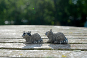 Fairies love the local wildlife and the feeling is mutual. These little racoons are perfect for any fairy glen.